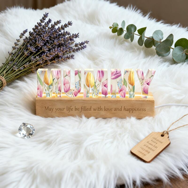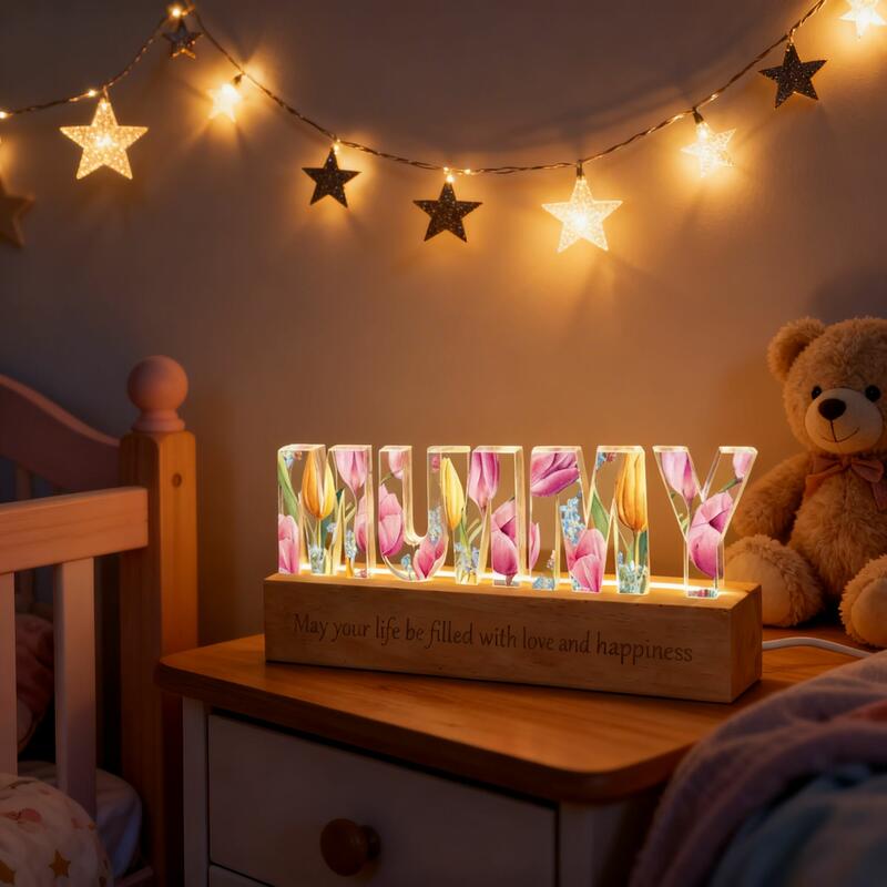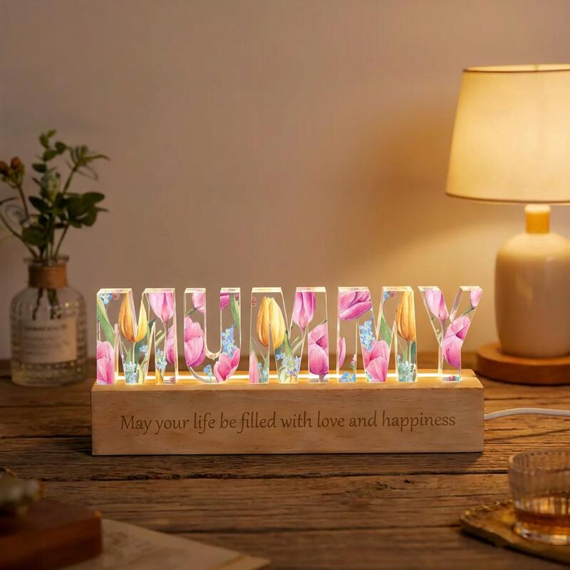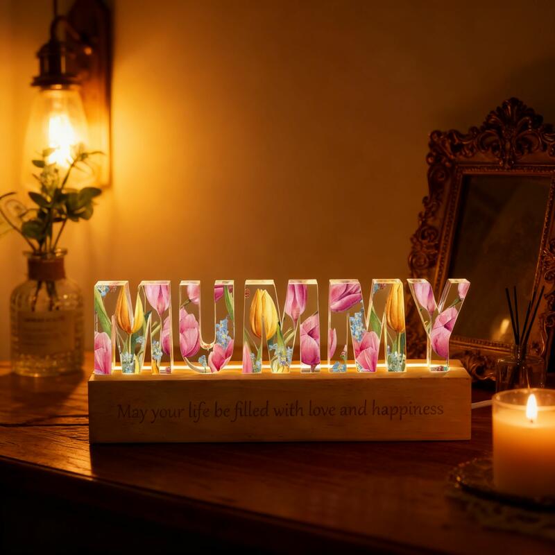 Lámparas personalizadas con letras de flores de tulipán regalo romántico para el Día de la Madre