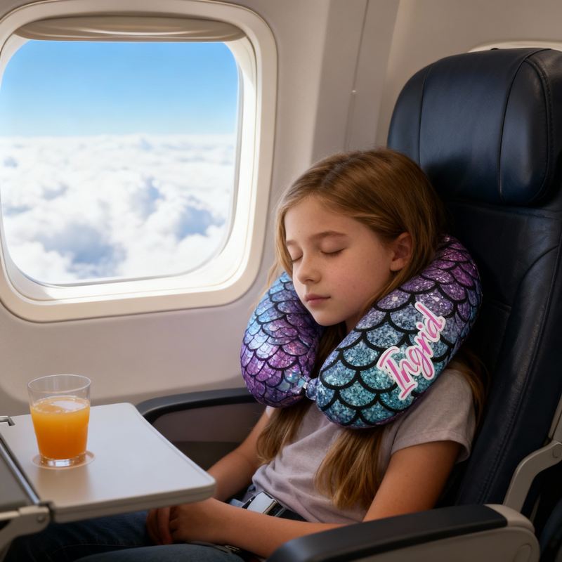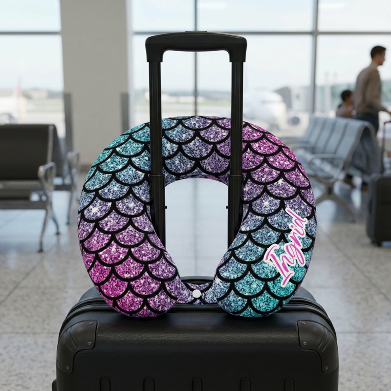 Almohada de cuello personalizada en forma de U con diseño de escamas de pez brillante, regalo perfecto para niños y amigos.