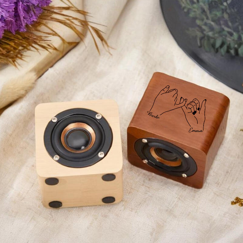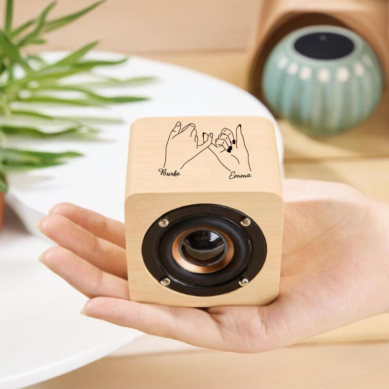 Altavoz Bluetooth de madera personalizado con nombre de pareja y patrón de manos juntas, regalo para aniversario