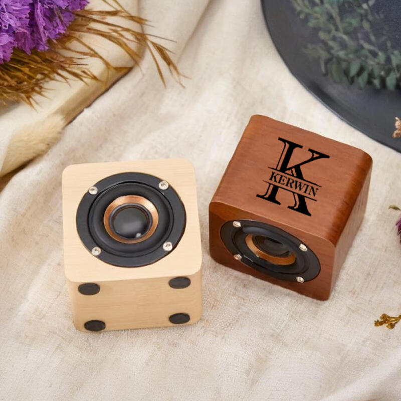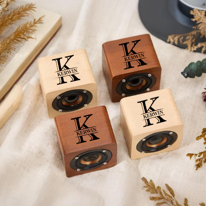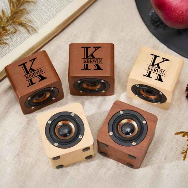 Altavoz Bluetooth de madera personalizado con nombre y letras personalizadas, regalo sencillo para la familia.