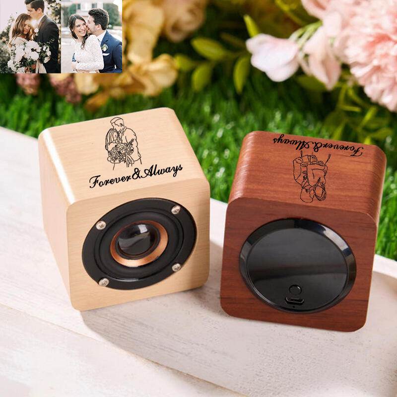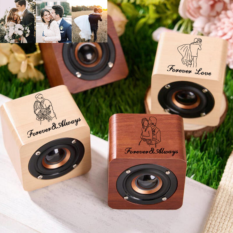 Altavoz Bluetooth de madera personalizado con foto y texto personalizados, regalo sencillo para pareja
