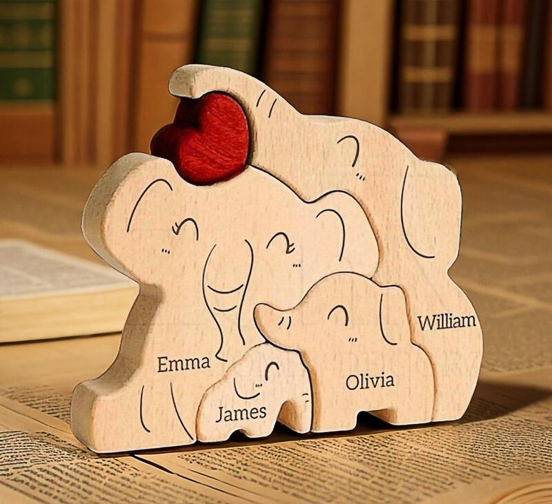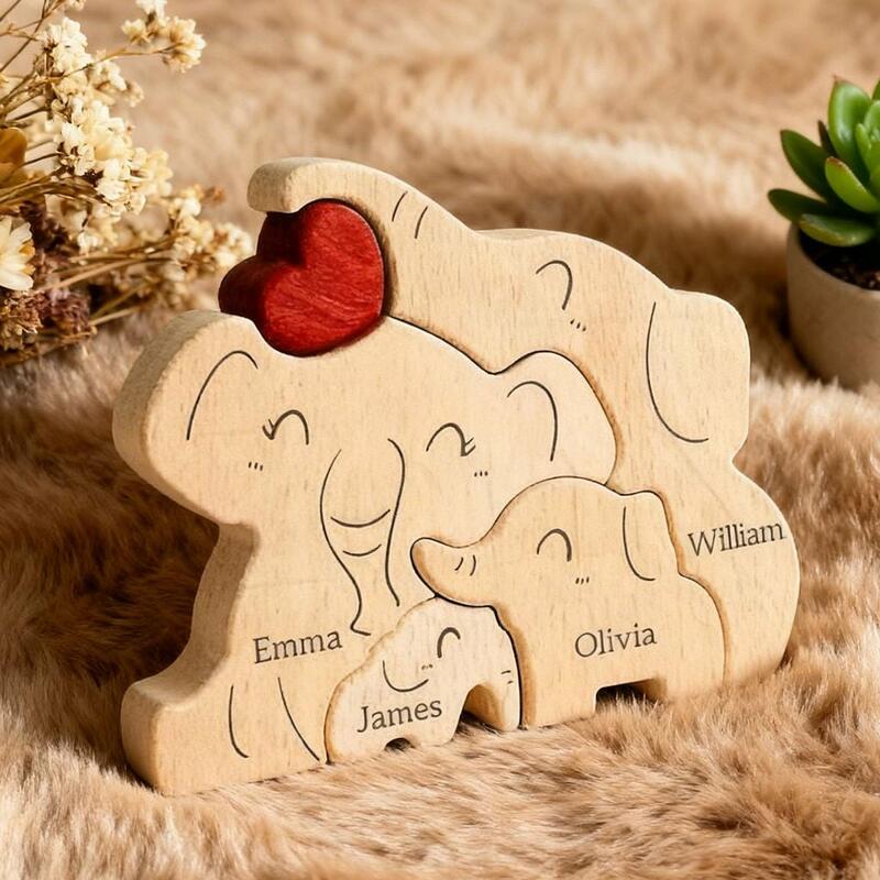 Rompecabezas de madera personalizado con elefantes regalo especial para el Día de la Madre