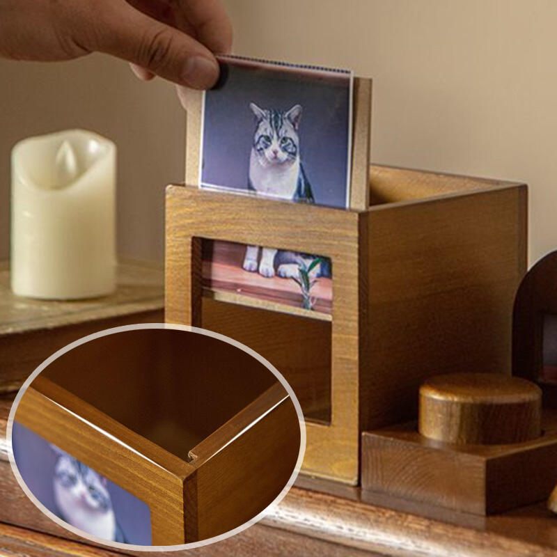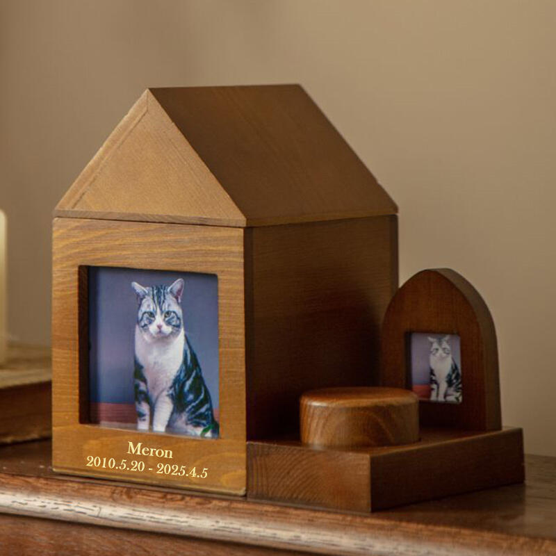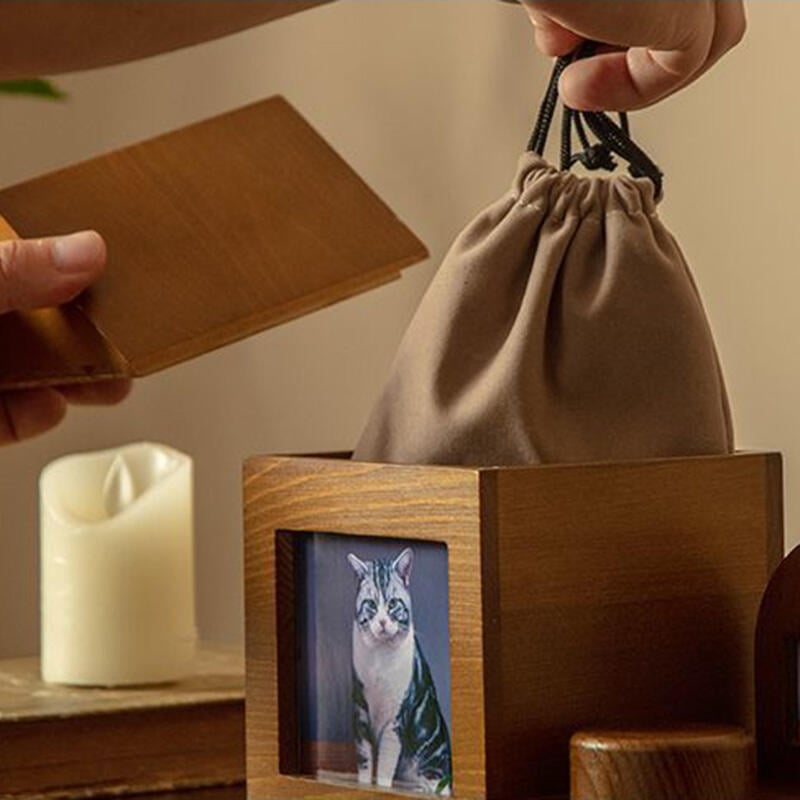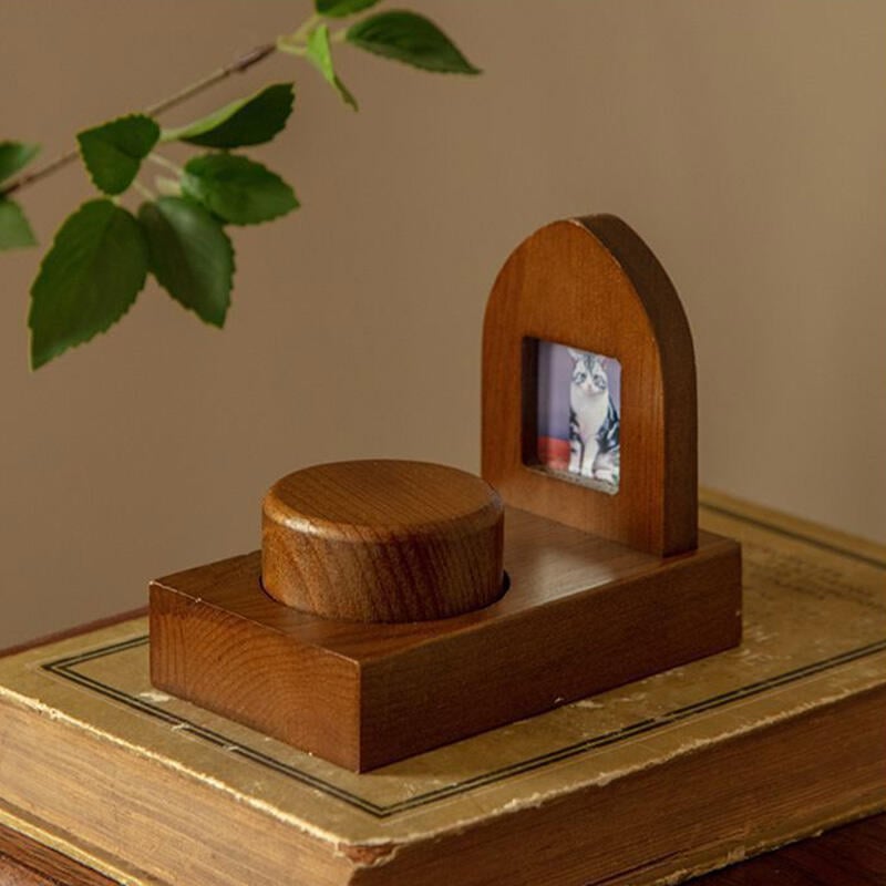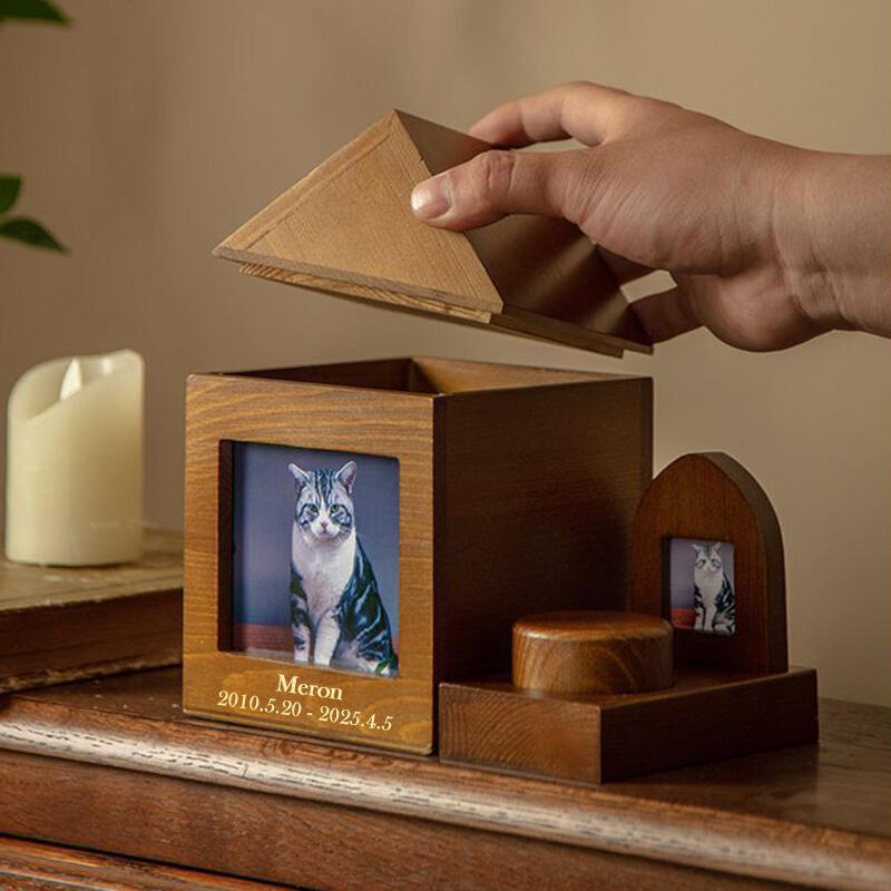 Urna de madera personalizada para mascotas con foto y nombre personalizados. Regalo para amantes de las mascotas.